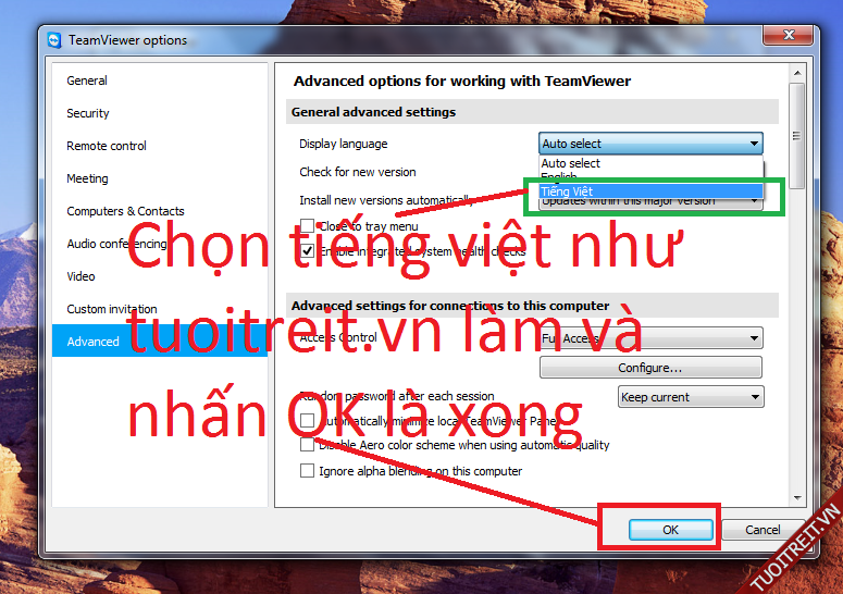 Như các bạn đã biết, với teamview khi cài đặt xong thì mặc định là tiếng anh