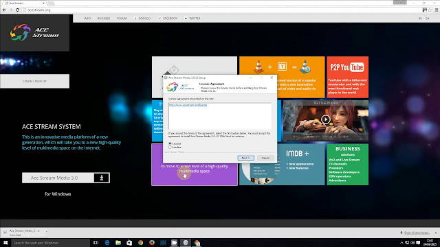 + Cách 1: Nếu như ở bước cài đặt bạn đã kích hoạt tiện ích Ace Stream Web Extension rồi thì bây giờ chỉ cần click vào đường link acestream đó là nó sẽ tự động mở phần mềm Ace Player HD để cho bạn xem.