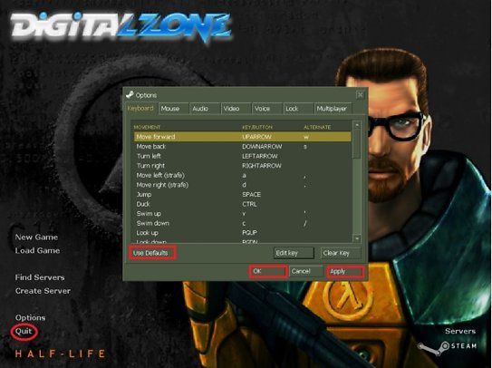 4. Nếu bạn muốn có các phím tương tự Game đột kích CF Online thì làm như hướng dẫn sau. Các bạn vào phần Options -> Keyboard rồi chọn Use Defaults như hình dưới.