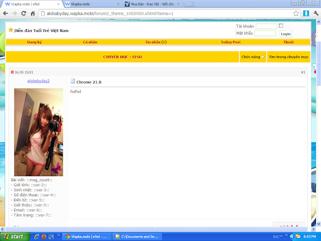 Trước hết là vào Messages in forum* sẽ thấy 3 ô, mình sẽ phải post code vào ô 1 vs 3 nhá, lần lượt là m1.txt và m3.txt. Tương tự Themes in forum* cũng post code vào ô 1 và 3 lần lượt là t1.txt và t3.txt