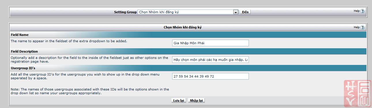 _Usergroup ID's: điền ID của nhóm và cách nhau bằng khoảng 1 lần SPACE (Ví dụ: 2 4 6....)