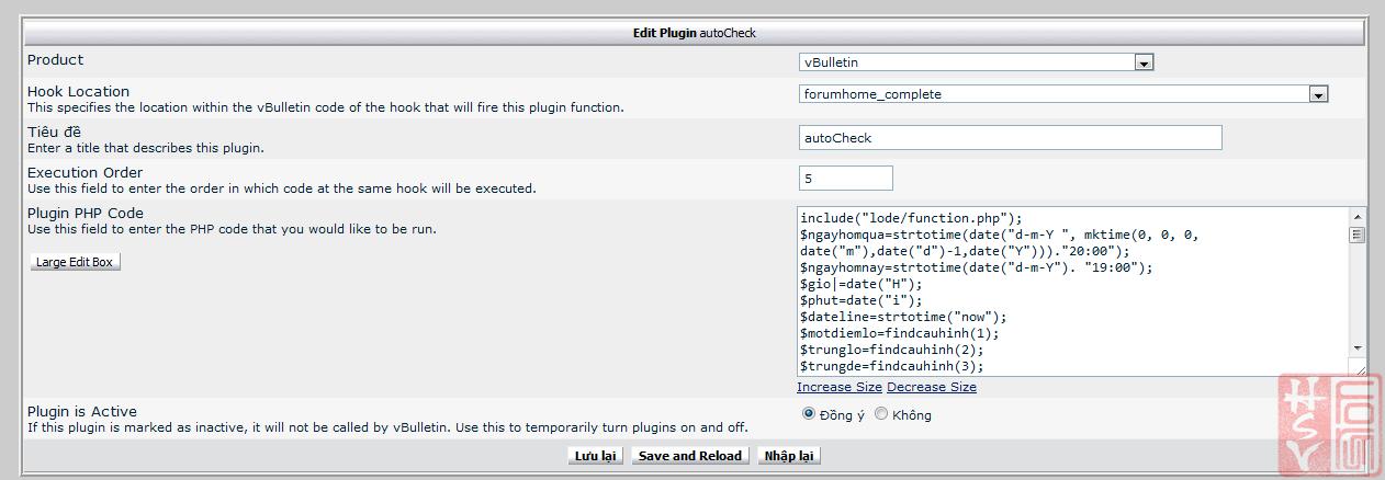 _Mở admincp -> Plugins & Products -> Plugin Manager -> Mở lại Plugin autoCheck của Bước 1 khi nãy, tìm: