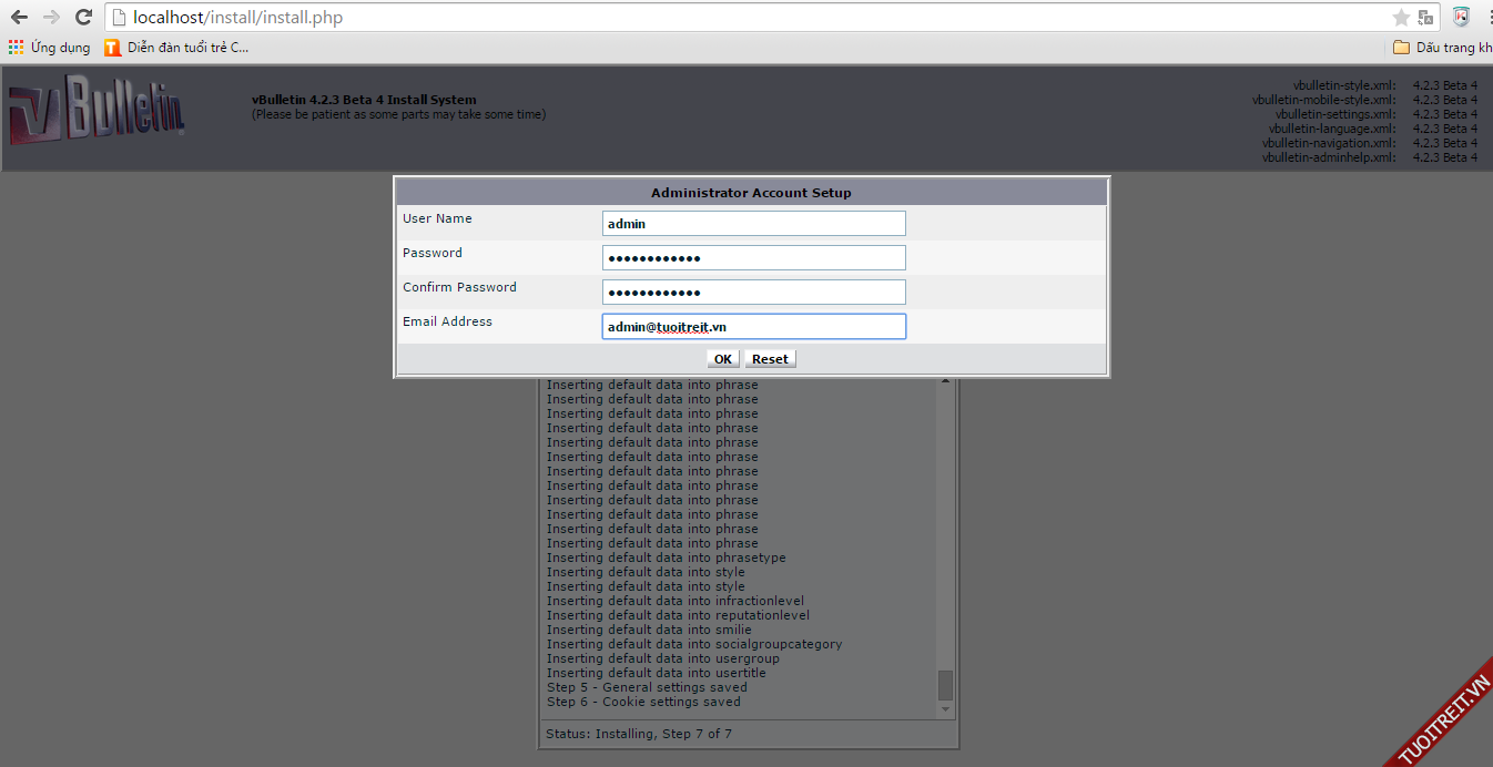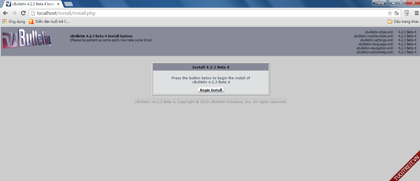 Giải nén tập tin tuoitreit.vn_vbulletin_suite_4.2.3_beta_4_nulled.zip, upload các tập tin trong thư mục upload lên host hay server